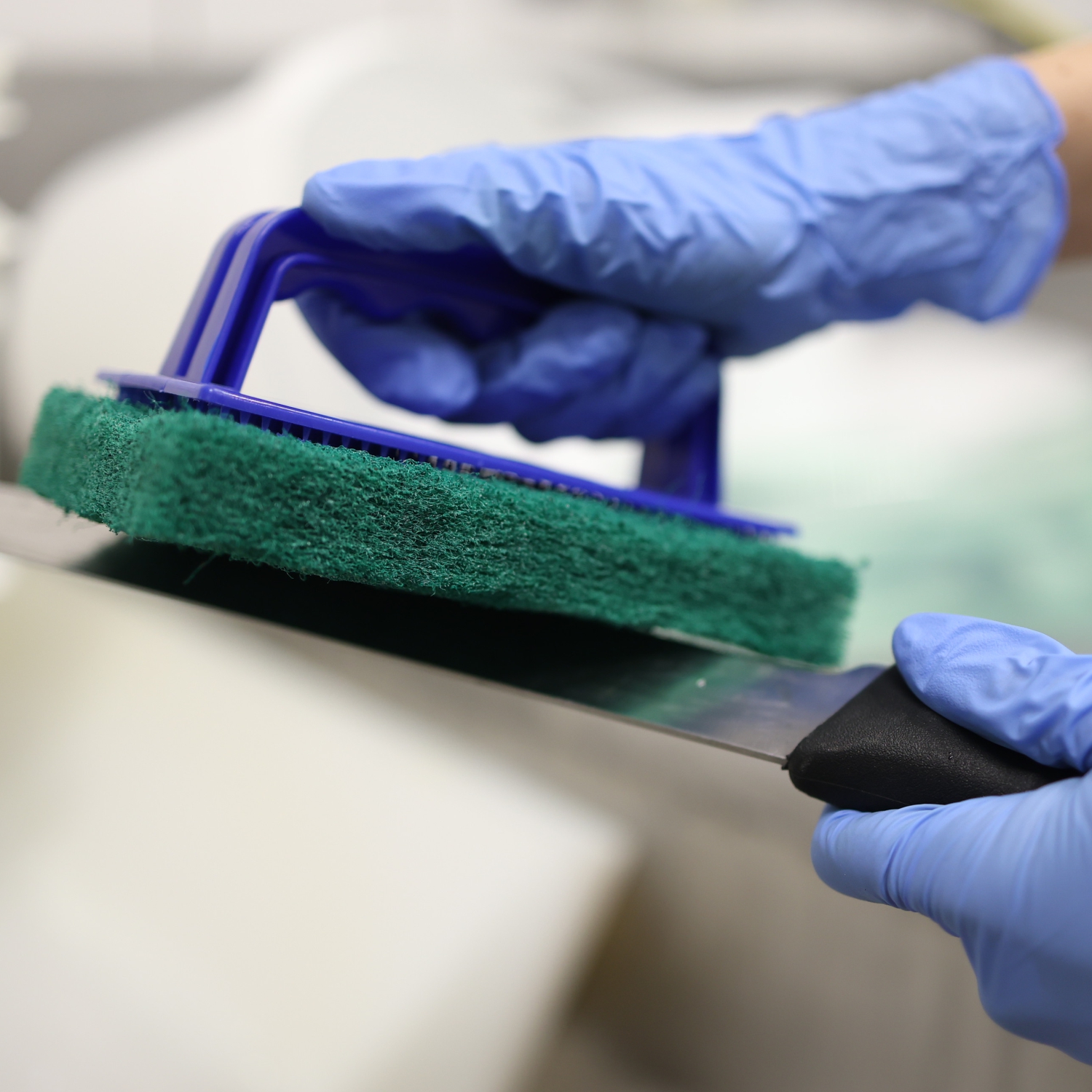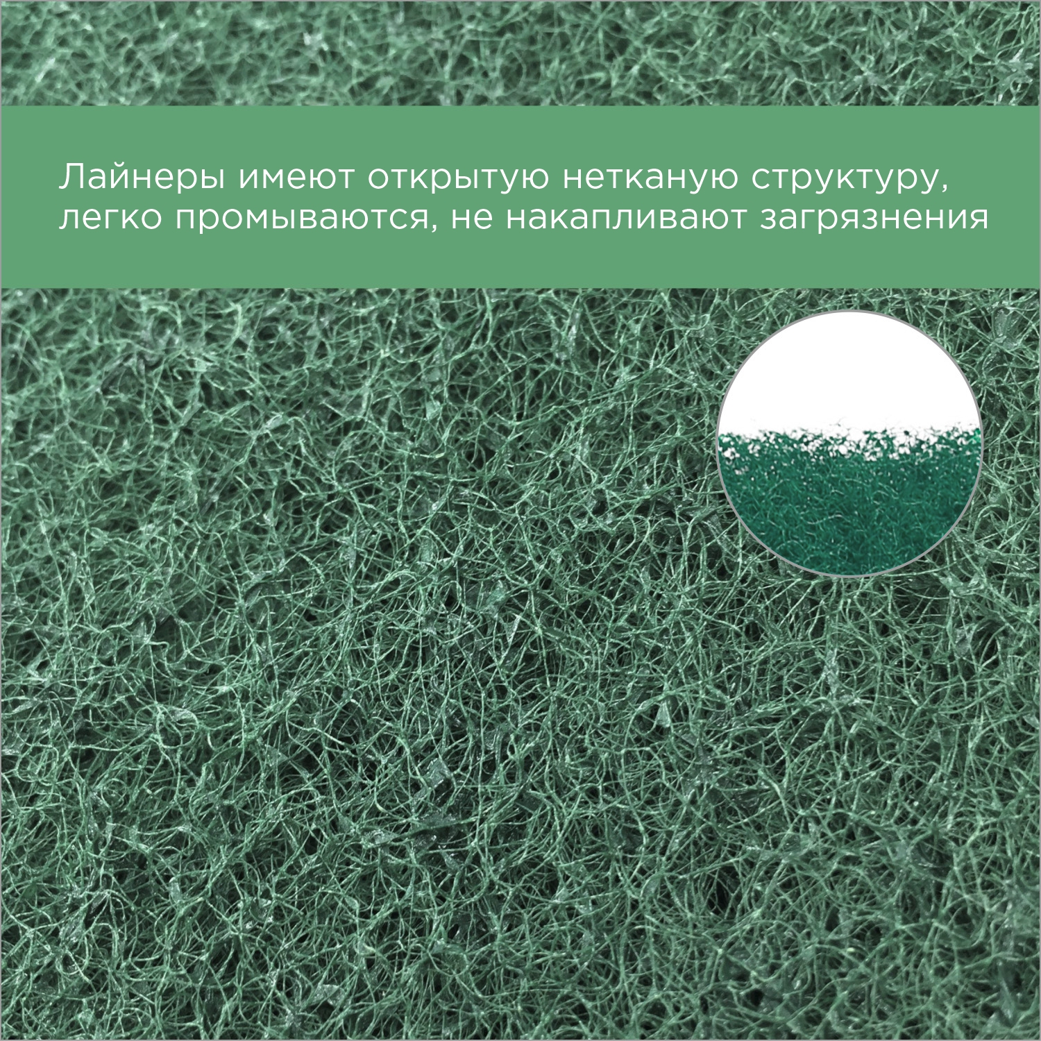 - Имеет открытую нетканую структуру с использованием уникальной абразивной технологии, благодаря чему легко промывается и быстро высыхает. Прочная связь между волокнами обеспечивает равномерный износ лайнера, что продлевает срок его службы и гарантирует эффективность очистки