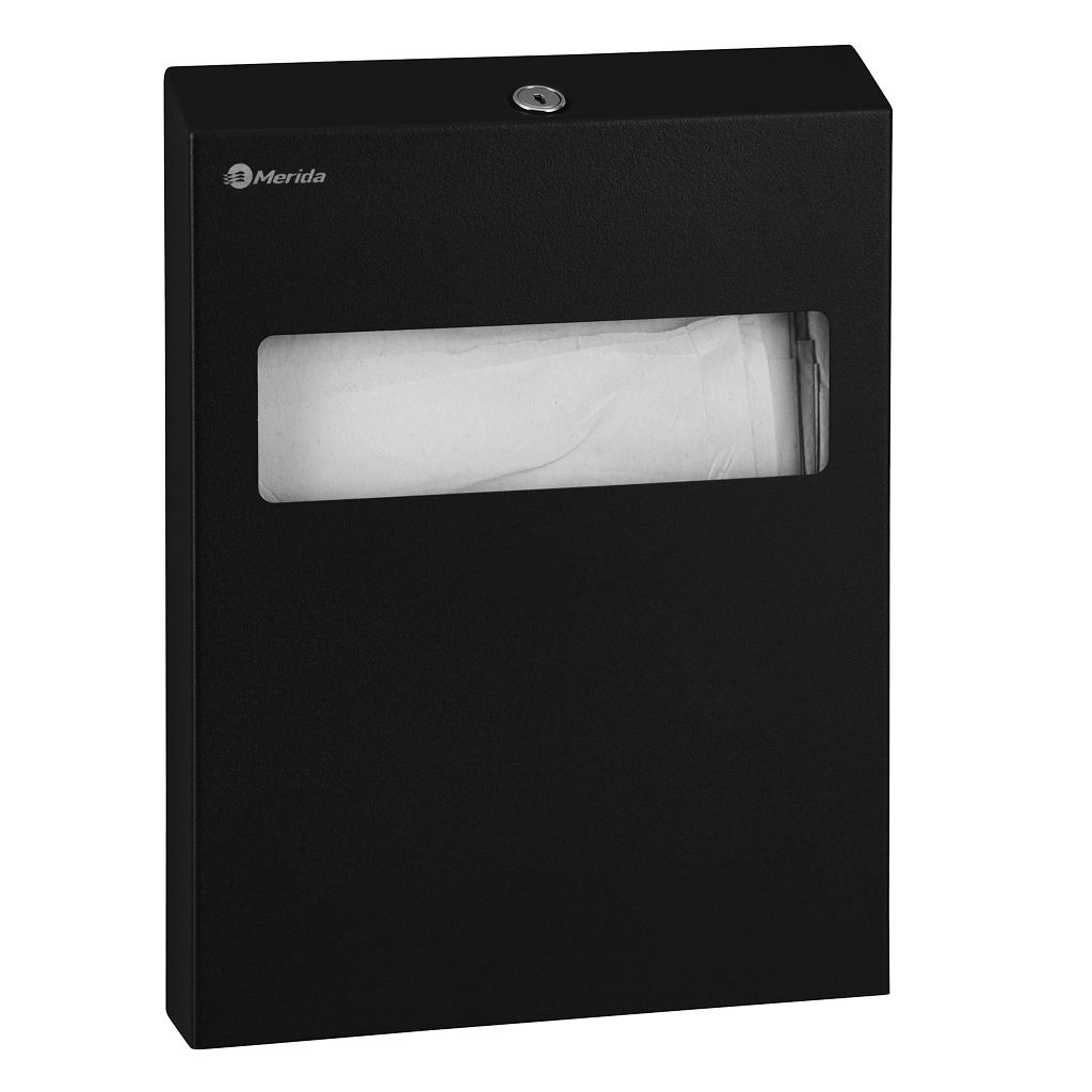 Держатель туалетных подкладок MERIDA STELLA чёрный — устройство для выдачи подкладок на сиденье унитаза, предназначенное для обеспечения удобства и гигиеничности в общественных туалетах. Заправляется упаковкой туалетных подкладок на 100 штук и идеально подходит для установки в местах с высокой проходимостью. Заправляется упаковкой туалетных подкладок 100 шт.