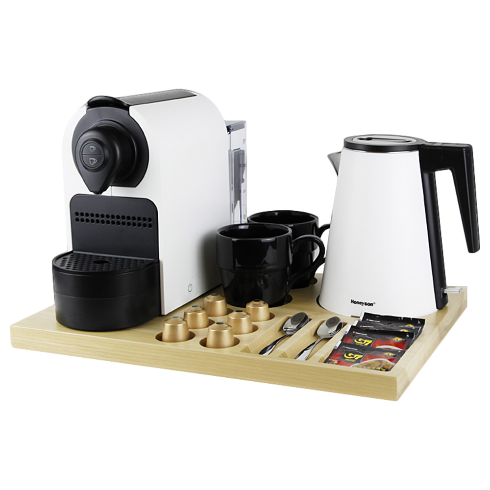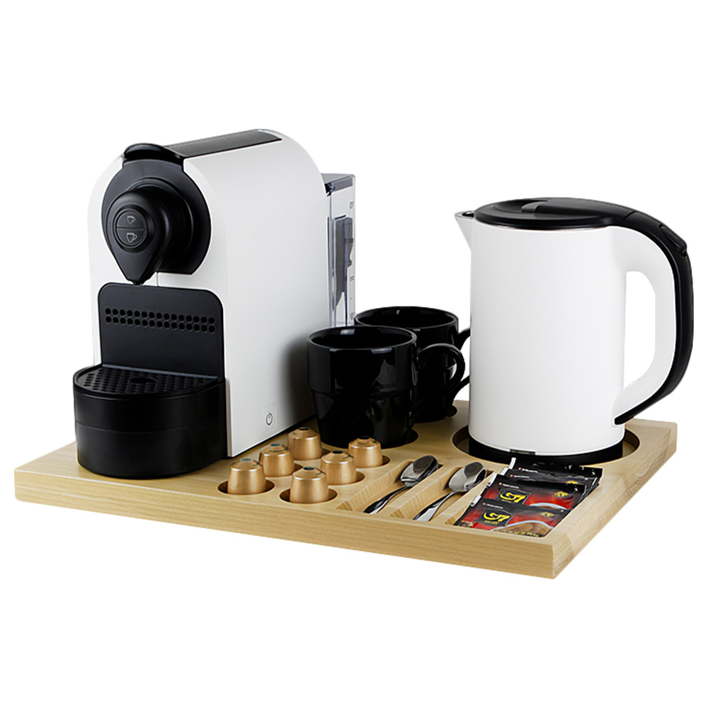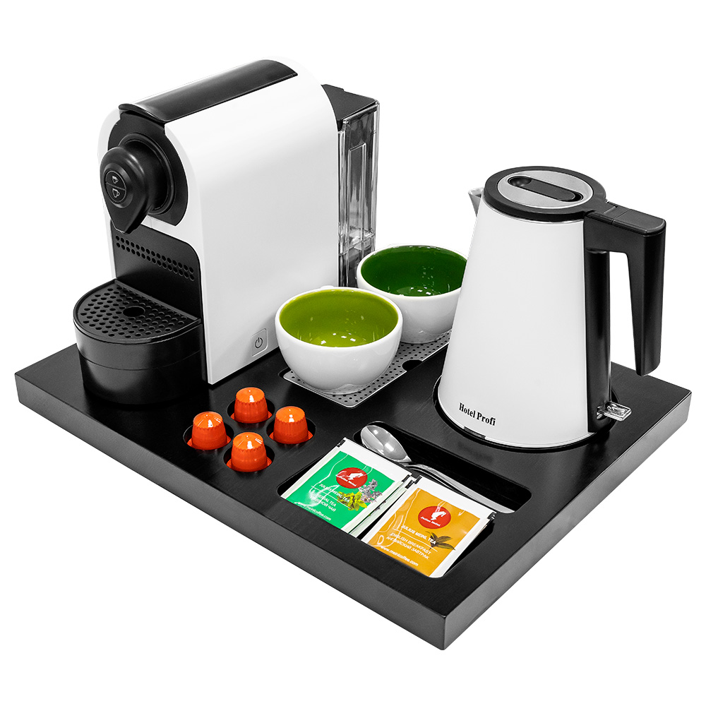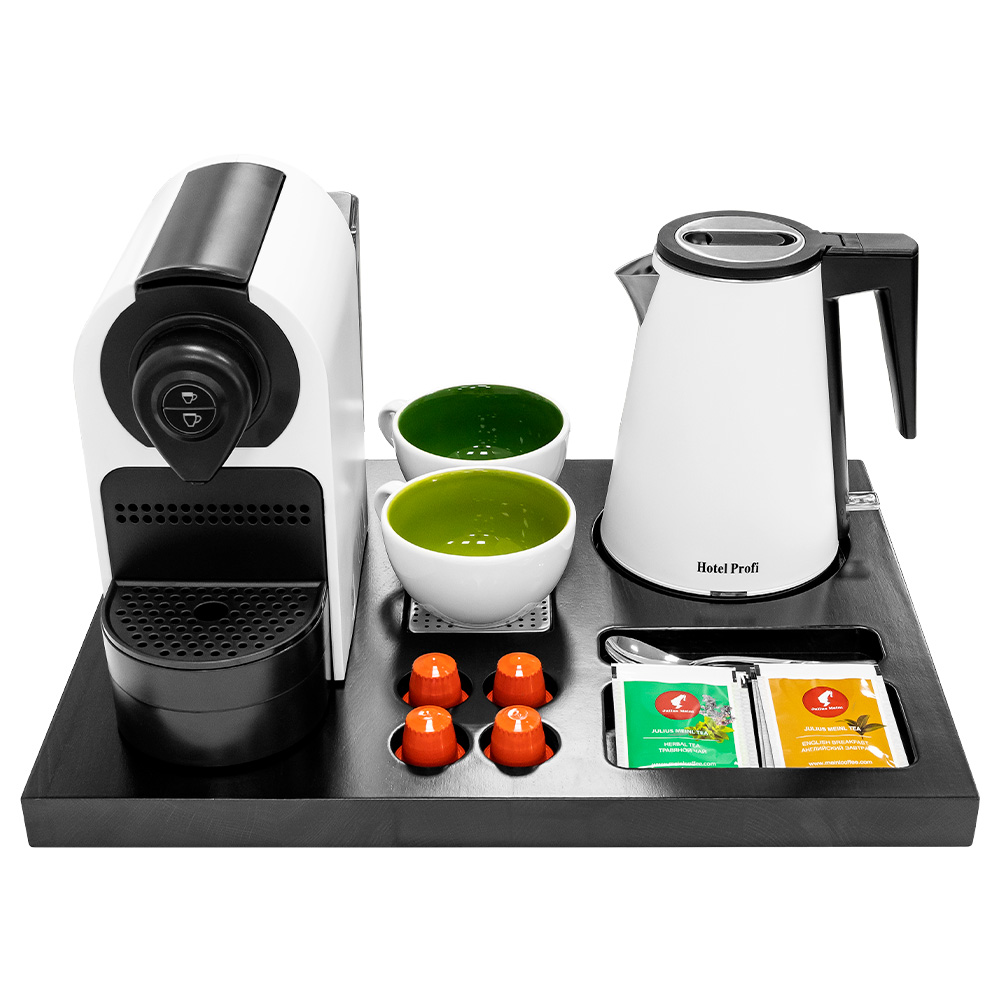 Кофейно-чайный набор для гостиничных номеров – это идеальное решение для создания комфортных условий для гостей. Этот комплект включает капсульную кофемашину и электрический чайник, которые сочетают в себе современный дизайн, надежность и простоту использования. Набор разработан специально для гостиниц, отелей и апартаментов, чтобы удовлетворить потребности даже самых требовательных клиентов.