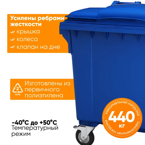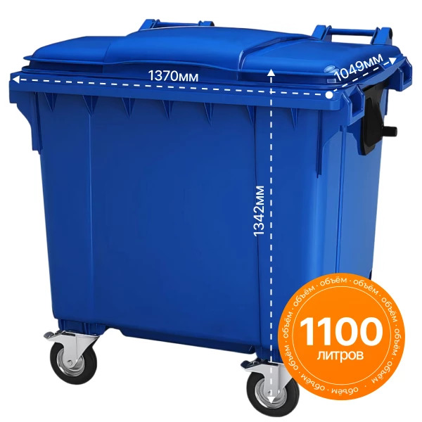 Мусорный контейнер синий объемом 1100 литров — это надежное и практичное решение для сбора, хранения и транспортировки отходов на придомовых территориях, в жилых комплексах, офисных зданиях и промышленных объектах. Он идеально подходит для раздельного сбора мусора, включая стекло, пластик, бумагу и другие виды отходов.