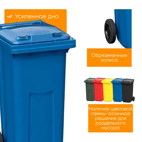 Мусорный контейнер объемом 120 литров с крышкой и колесами — это универсальное и практичное решение для сбора бытовых и пищевых отходов. Благодаря своим компактным размерам и маневренности, он идеально подходит для использования в частных домах, коттеджных поселках, магазинах, на складах и предприятиях различного профиля.