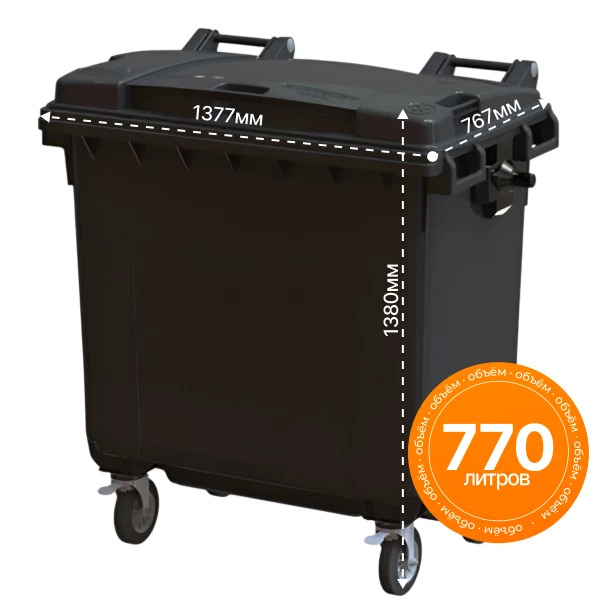 Мусорный контейнер серый объемом 770 литров — это надежное и практичное решение для сбора, хранения и транспортировки отходов на придомовых территориях, в жилых комплексах, офисных зданиях и промышленных объектах. Он идеально подходит для раздельного сбора мусора, включая стекло, пластик, бумагу и другие виды отходов.