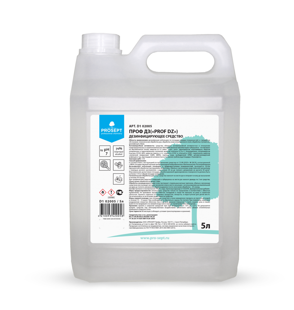 Дезинфицирующее средство на основе изопропилового спирта. Используется для гигиенической обработки рук, обработки кожи инъекционного поля, обработки ступней ног, дезинфекции обуви, дезинфекции небольших по площади твердых поверхностей и предметов обстановки.