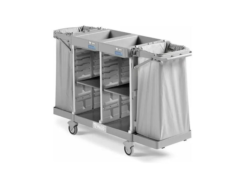 Тележка для белья TTS Magic Hotel 850B Compact предназначена для работы горничных как для сбора, транспортировки грязного белья, мусора, так и для транспортировки чистых принадлежностей гостиничного номера, предметов ухода за номером. Данная тележка позволяет обслуживать от 10 до 12 номеров на одном этаже.