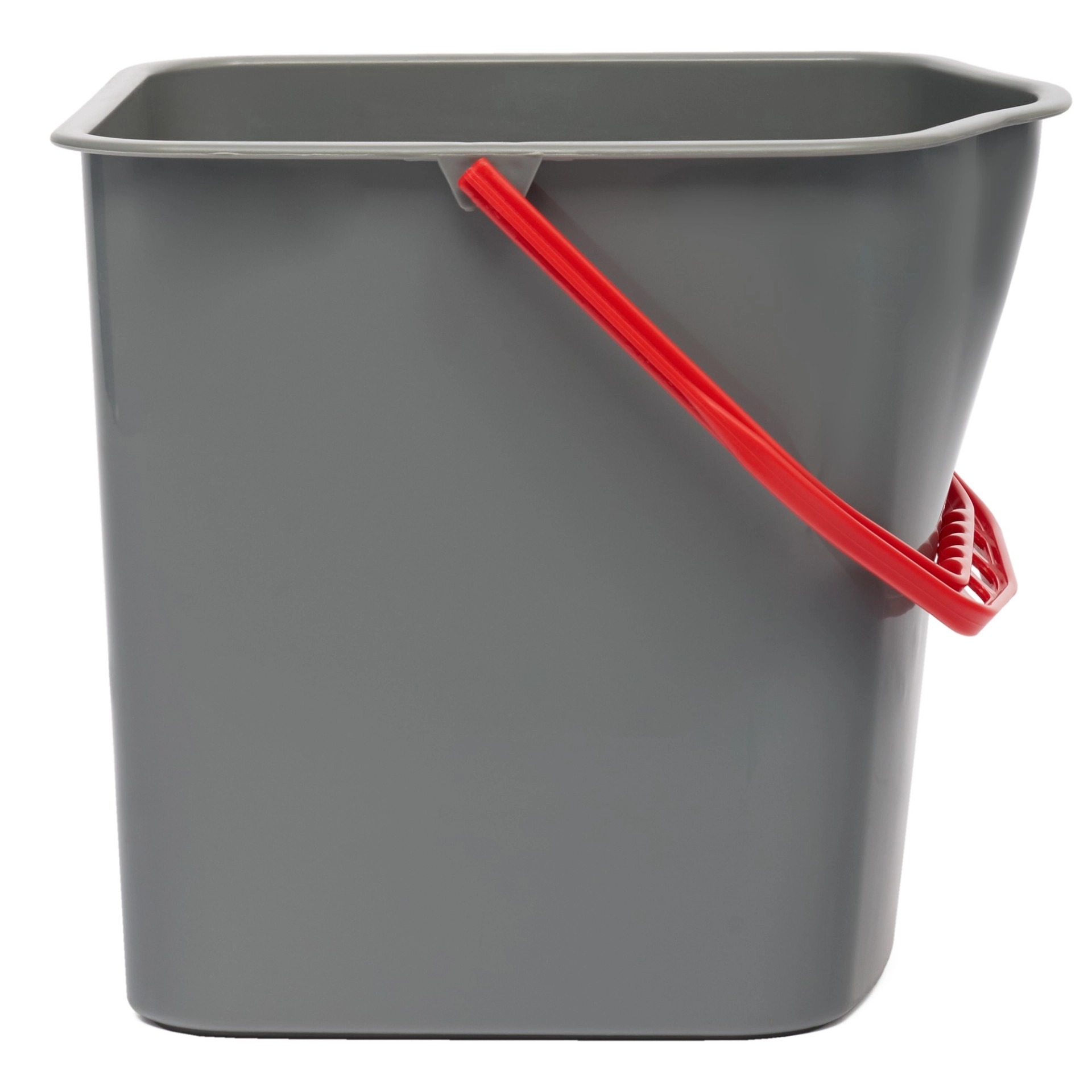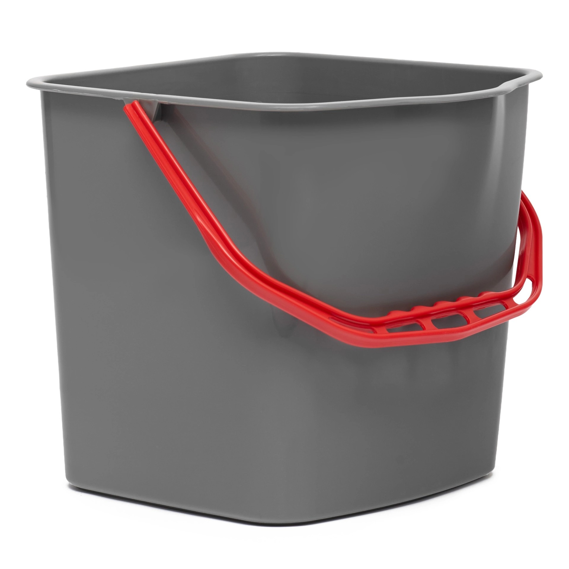 - Эргономичный дизайн: Красная ручка обеспечивает удобство при переноске и визуально выделяет ведро, что упрощает организацию уборочного процесса.